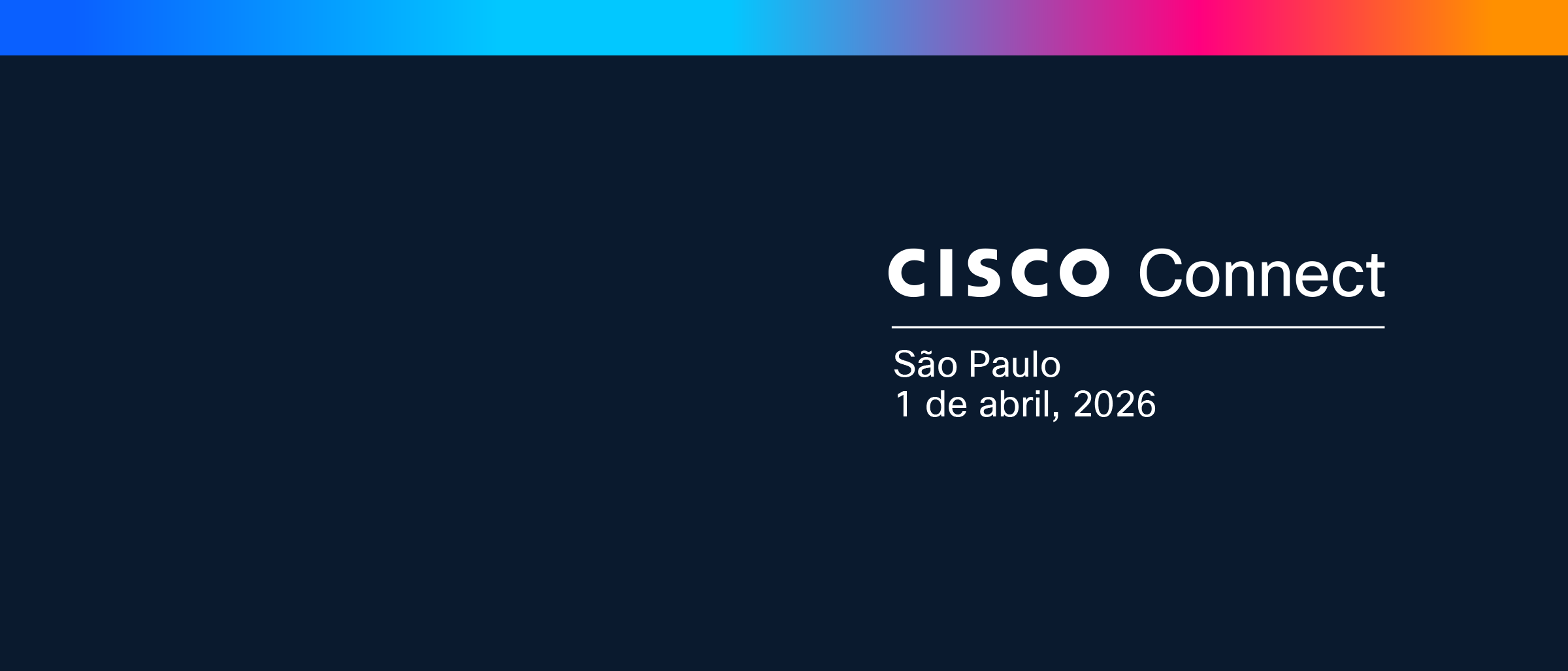 | Breakout #1 11:00 - 11:50 | AI-powered connectivity: Cisco platforms and AgenticOps shaping the next era | Inteligência conectada – Como a IA transforma as interações em experiências excepcionais | A nova era do data center e da aplicação de IA com as soluções da Cisco | O fim da segurança |